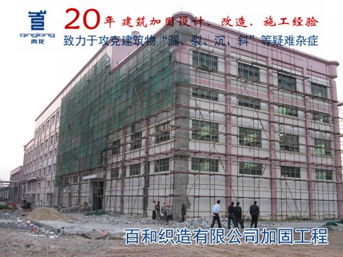 深圳青龙加固公司服务范围包括: 1、厂房结构加固与改造工程;2、土木建筑抗震加固; 3、桥梁、隧道与道路加固; 4、建筑物结构托换、平移和纠倾; 5、建筑物增层改造加固; 6、地基加固与托换; 7、受损建筑物裂缝加固修复; 8、大面积坡体加固; 9、桩基、软基及质量缺陷处理工程; 10、建筑物诊断、加固改造方案设计与安全评估。欢迎来电洽谈合作!